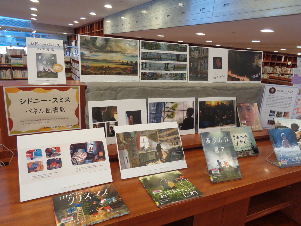 絵本作家 シドニー・スミスさんの作品パネルと著作を展示します